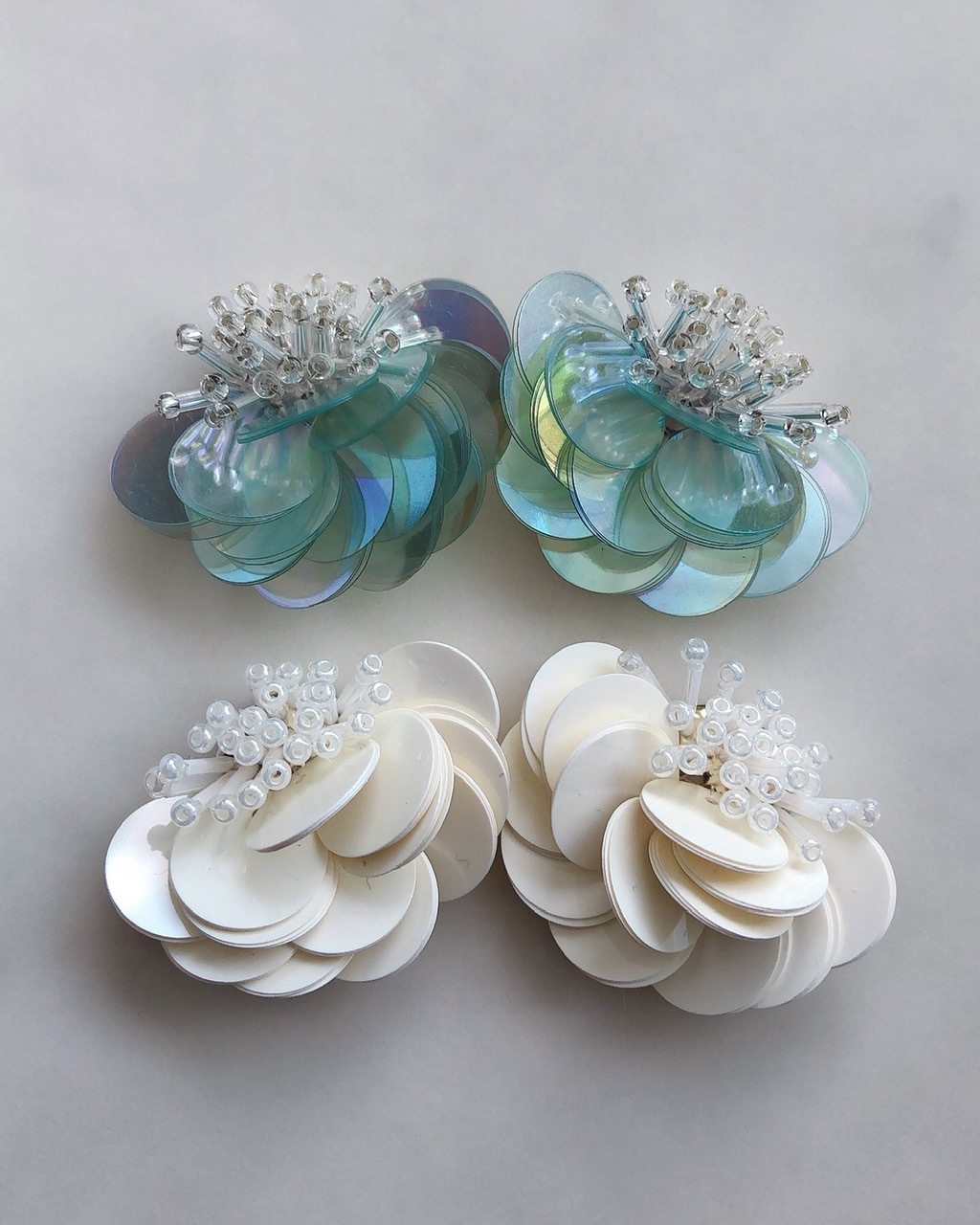 スパンコールとビーズを使って、お花をデザインしました。