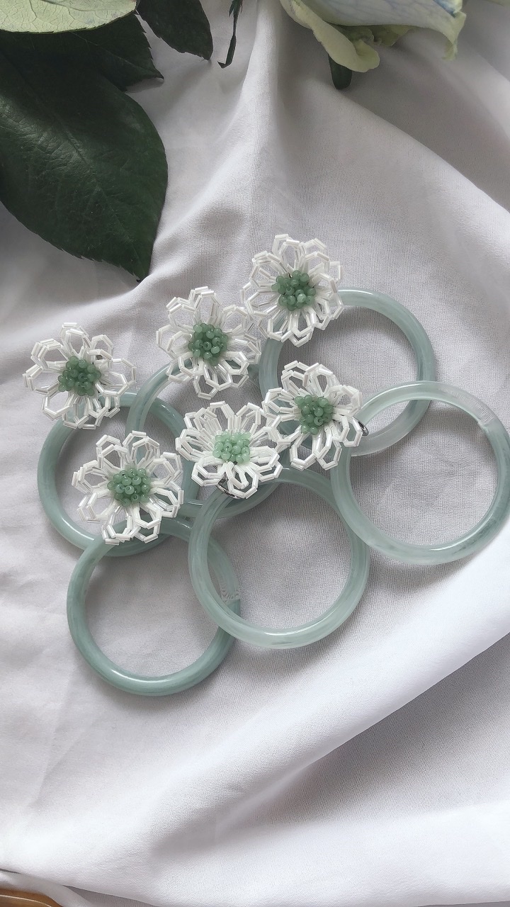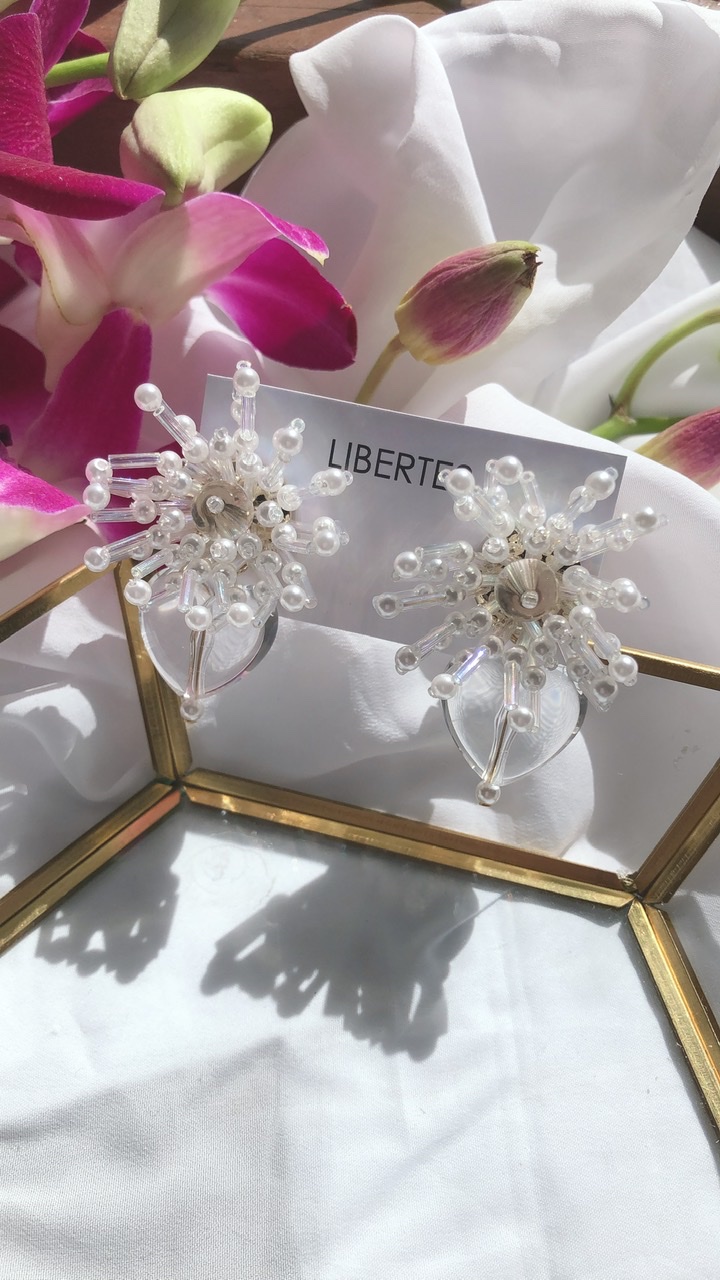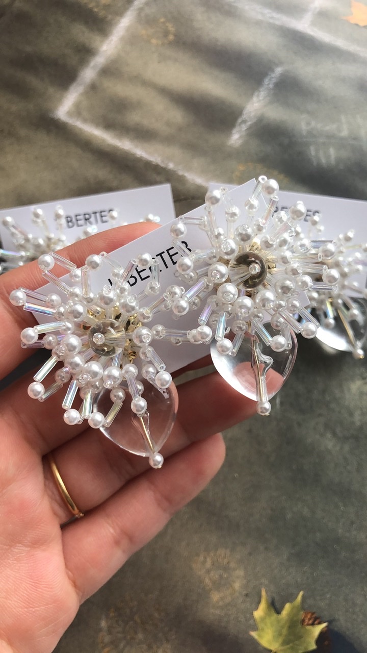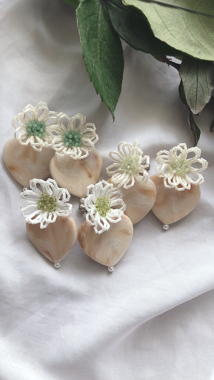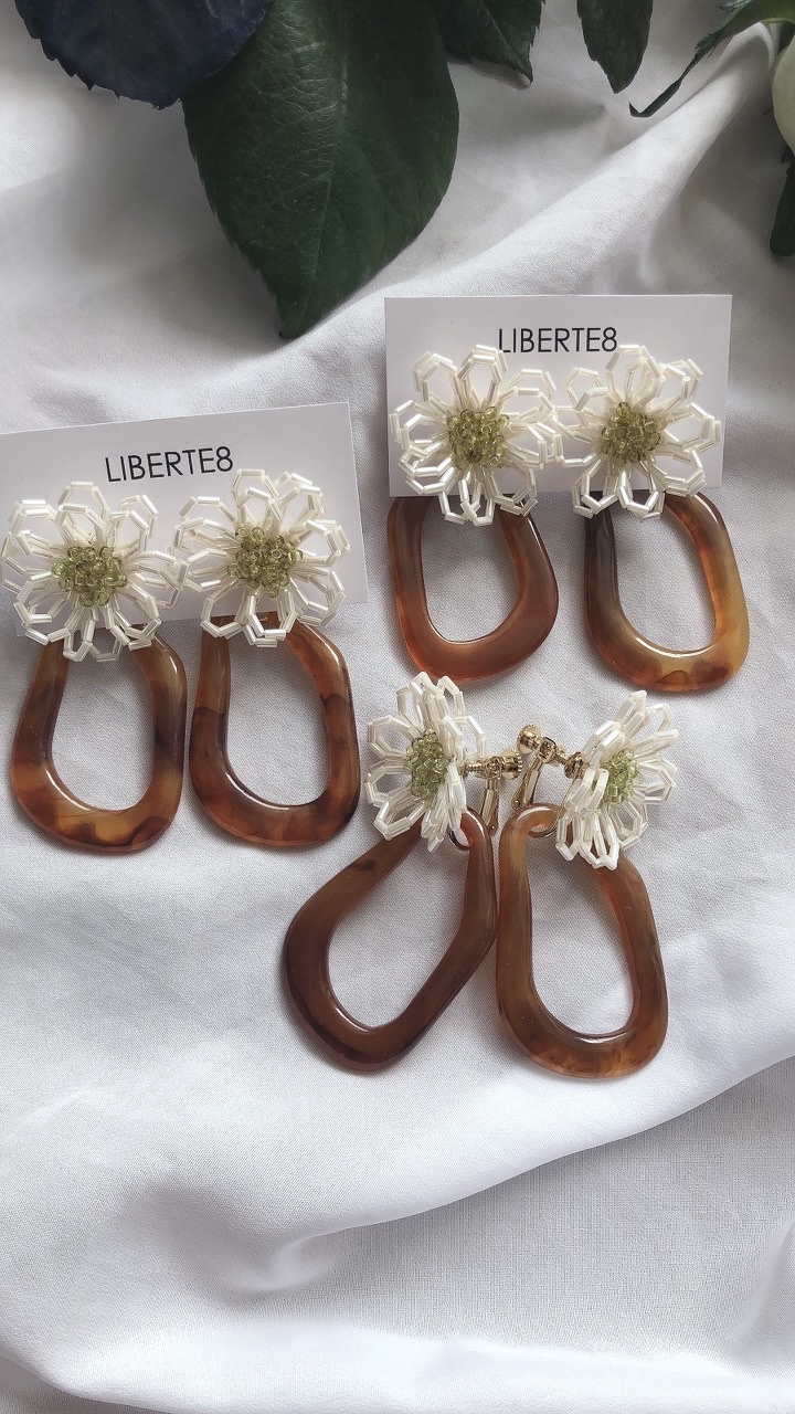 こちら、小さなパールとビーズを使ったンドメイドのピアスとイヤリングです。
