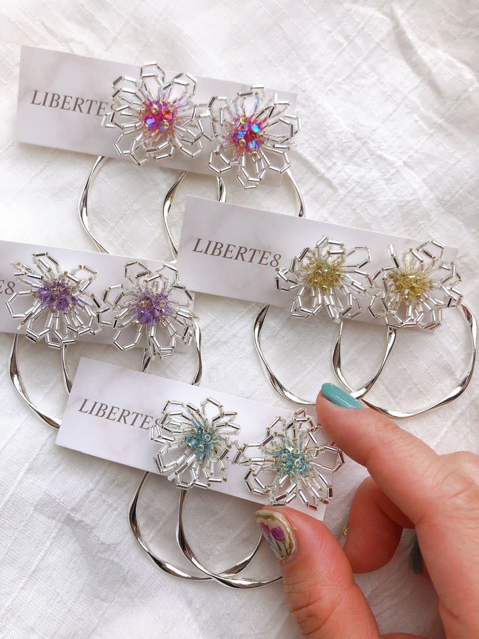 カラーはゴールドとシルバーの2種類を予定しております。無造作に動くコットンパールがアクセントとなります。人とは、被らないアクセサリーとなってます。委託販売先にも納品しようか考え中です😊