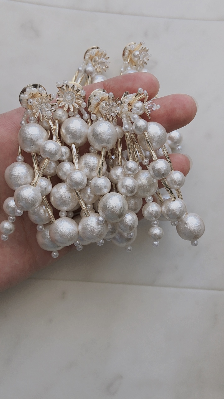 パールをたっぷり使ったハンドメイドのピアスとイヤリングです。