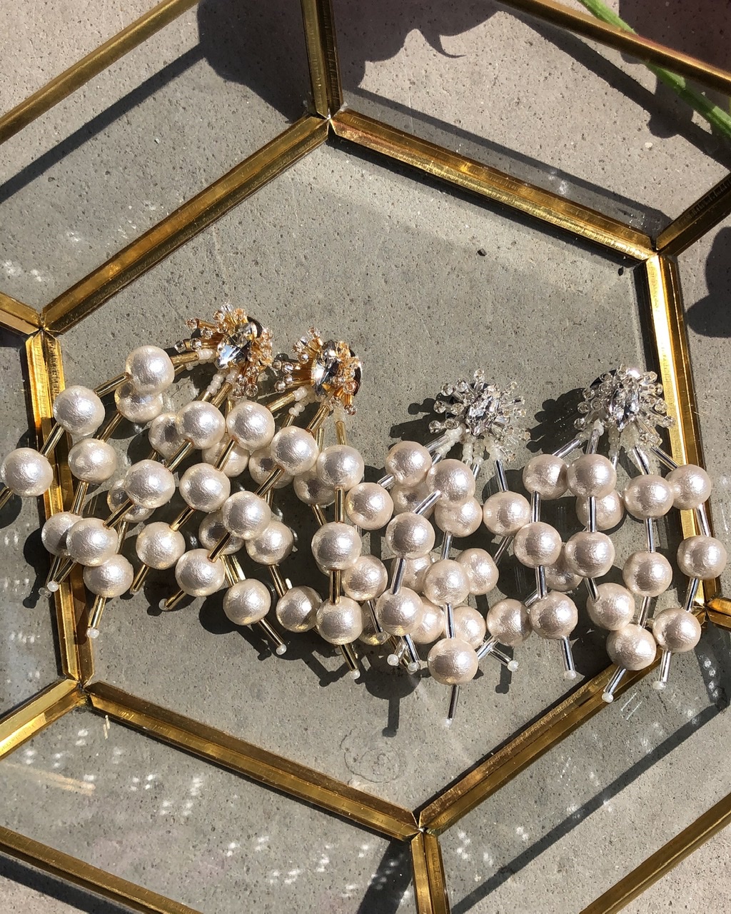 小さなお花やパールに、キラキラしたスワロフスキーのビーズを使って作りました✨